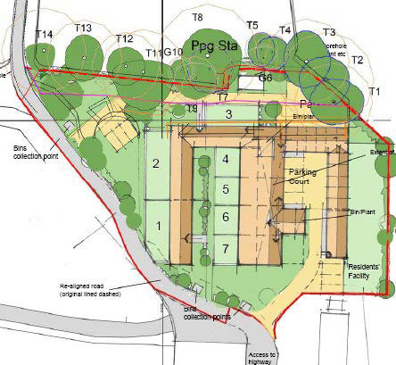 Detailed planning application for conversion of a group of stables into 7 dwellings, community unit and external works. Sustainable equine development including renewable energy from horse manure. [In progress]